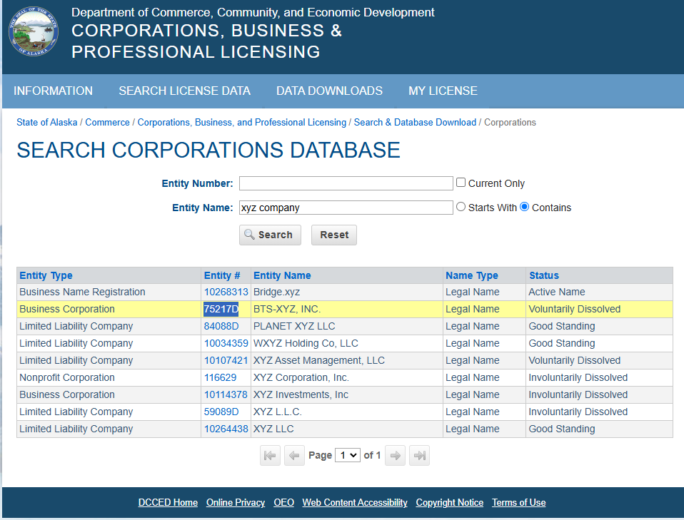 For the most current and accurate data, it is advisable to consult the Division of Corporations, Business and Professional Licensing (DCBPL) of the Alaska Department of Commerce, Community, and Economic Development (DCCED) or conduct an Alaska business entity search by following the procedure outlined below: